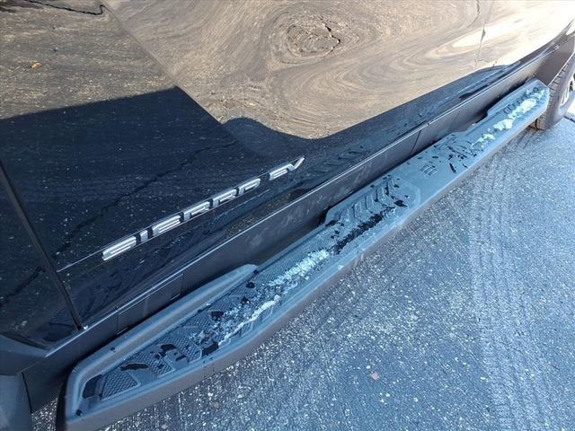 Practical features like a spray-on bedliner, LED cargo lighting, integrated trailer brake controller, multiple power outlets, and remote start add convenience and versatility. With a dual-level charge cord and rear camera washer, this Sierra EV Elevation blends innovation and utility for a modern driving experience.